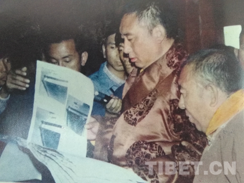 圖為十世班禪大師審查重建班禪東陵扎什南捷的圖片。圖片翻拍自《西藏文史資料選輯》