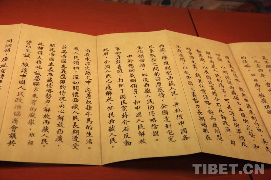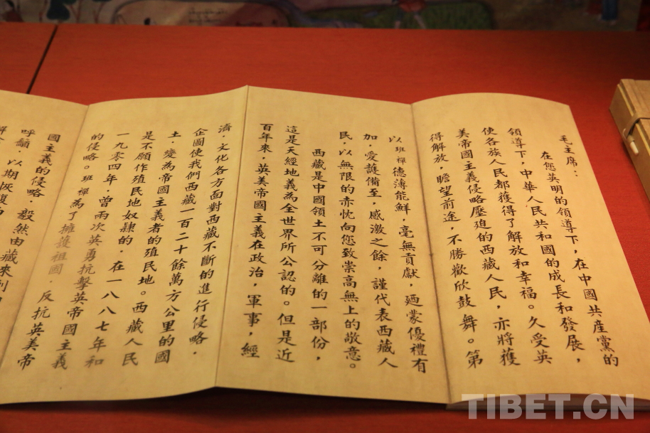 • U020190125330167267702.jpg圖為十世班禪額爾德尼敬獻毛主席的獻詞,民族文化宮博物館藏。