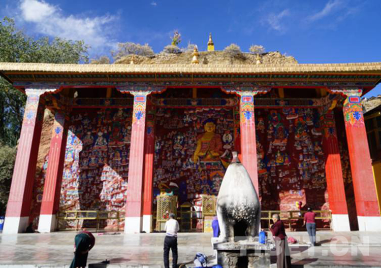 圖為拉薩千佛崖雕鑿在一整面山壁上