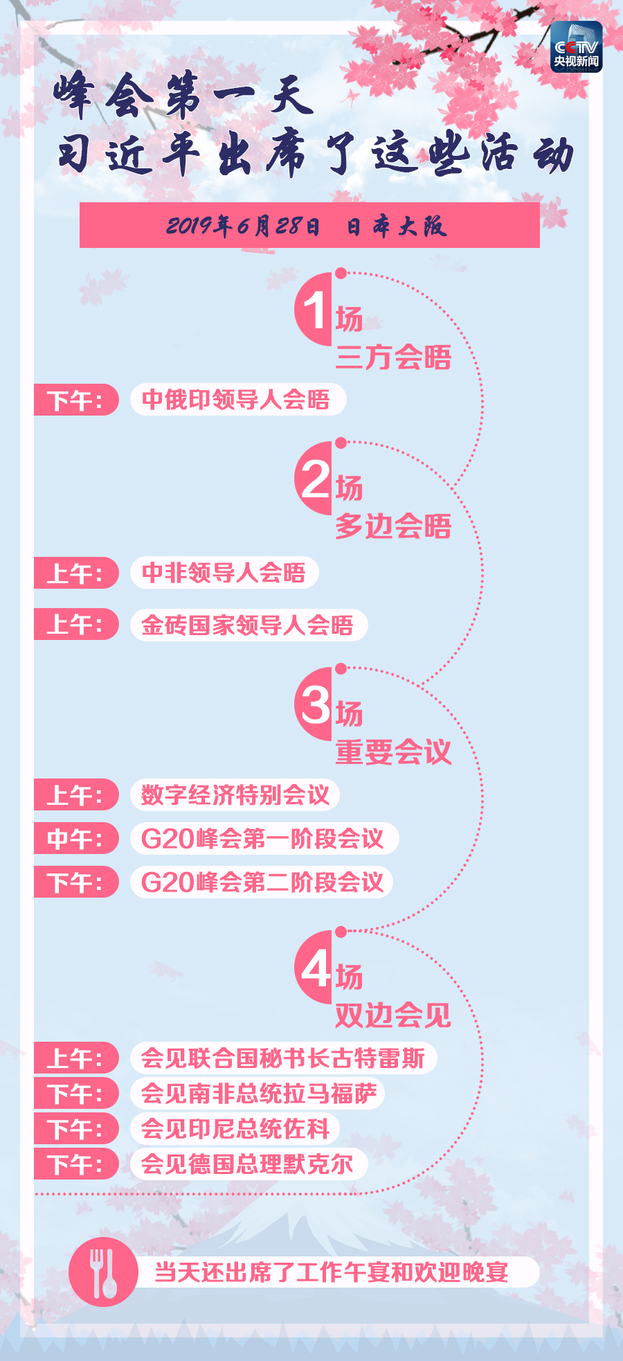 6月29日是G20大阪峰會的最后一天。習(xí)近平主席將繼續(xù)出席G20大阪峰會后續(xù)階段的會議,并同多國領(lǐng)導(dǎo)人舉行雙邊會見,其中與美國總統(tǒng)特朗普的會晤也將于當(dāng)天舉行。請繼續(xù)關(guān)注《時政新聞眼》。