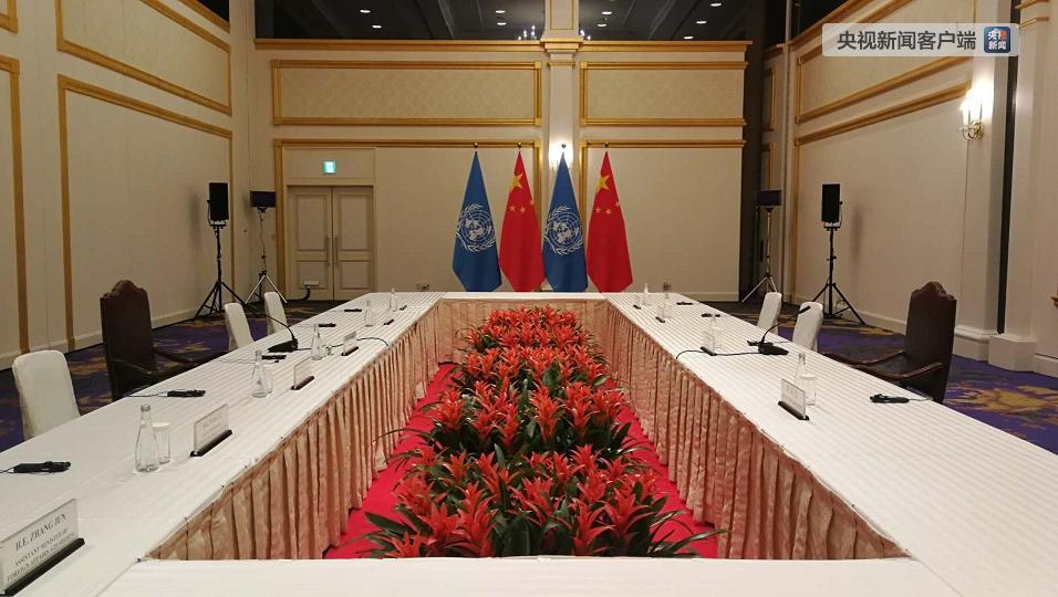 習(xí)近平與古特雷斯會見的會場。(央視記者黃京輝拍攝)