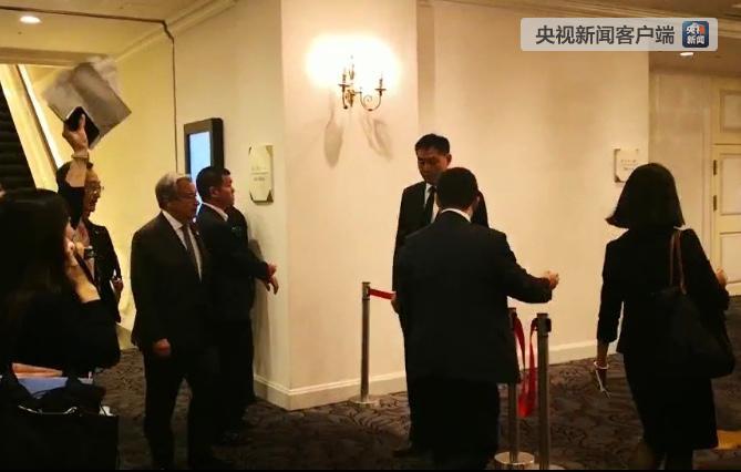 當(dāng)天習(xí)近平出席的第一場活動就是在下榻酒店會見古特雷斯。這是古特雷斯正在走進會見現(xiàn)場。(央視記者魏建拍攝)