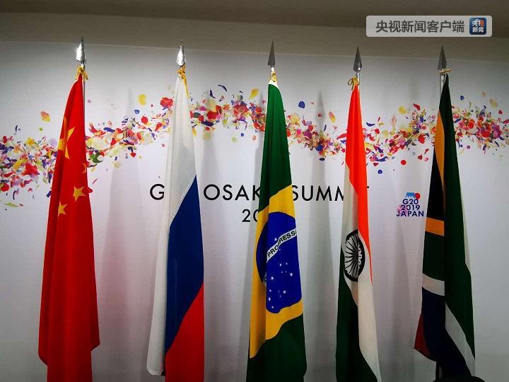 會場的金磚五國國旗。(央視記者荊偉拍攝)