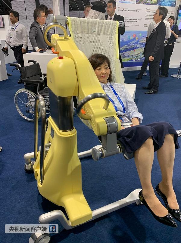 這個機械可以幫助護工照顧起居困難的老人,用“公主抱”般的體驗維護老人的尊嚴(yán)。護理人員可以通過控制兩個橘色的手柄,托著老人緩慢坐起或躺下,并完成高度升降,再拆掉上下兩端的金屬軸支撐,盡可能溫柔地幫助老人完成從床到輪椅的轉(zhuǎn)移。(央視記者項思拍攝)