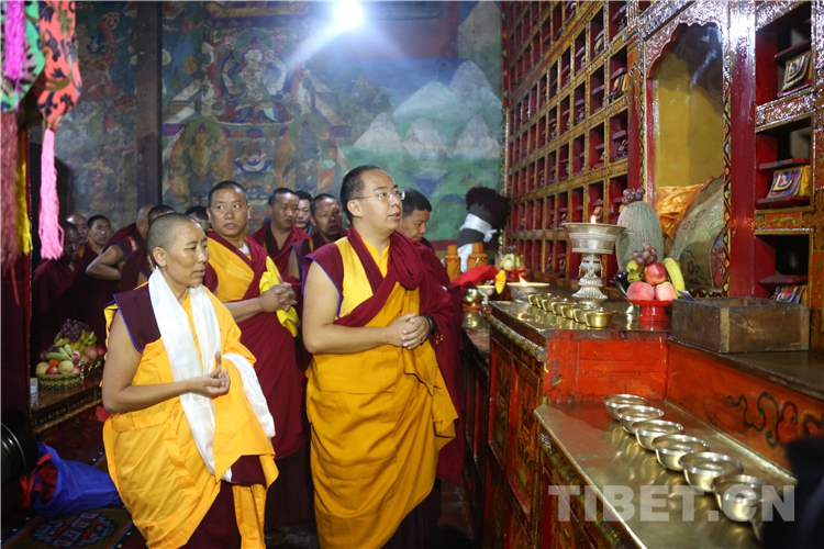 圖為桑珠孜區(qū)皓寺僧人為十一世班禪念誦頌詞 攝影:王淑