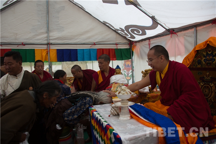 圖為十一世班禪為信教群眾摸頂賜福 攝影:王淑
