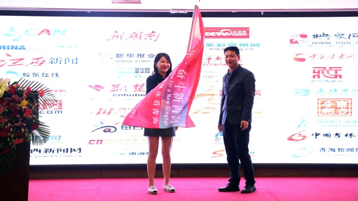 青海省互聯(lián)網(wǎng)信息辦公室副主任李志雄為網(wǎng)絡媒體采訪團授旗