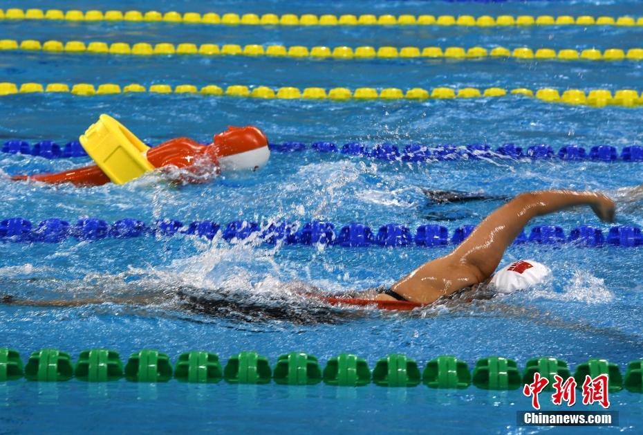 10月22日晚,在湖北省武漢市進(jìn)行的第七屆世界軍人運(yùn)動會男子4x50米混合救生接力決賽中,中國隊(duì)以1分27秒37的成績獲得冠軍。中新社記者 周毅 攝