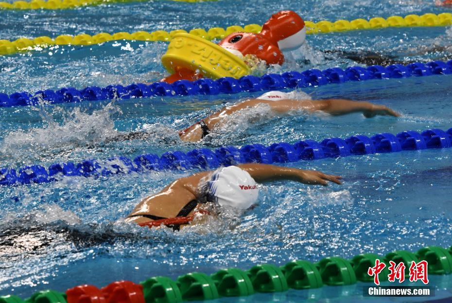 10月22日晚,在湖北省武漢市進(jìn)行的第七屆世界軍人運(yùn)動會男子4x50米混合救生接力決賽中,中國隊(duì)以1分27秒37的成績獲得冠軍。圖為比賽現(xiàn)場。中新社記者 周毅 攝