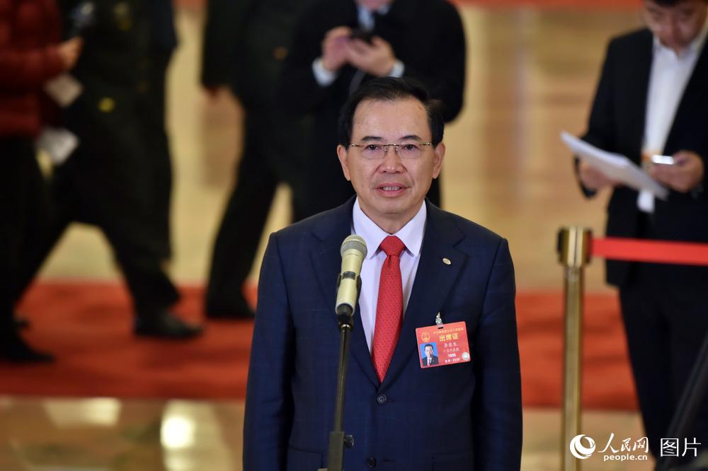 全國(guó)人大代表、TCL集團(tuán)股份有限公司董事長(zhǎng)兼CEO李東升接受記者采訪。人民網(wǎng)記者 翁奇羽 攝