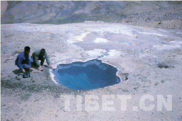 羊八井熱水湖。這個(gè)熱水湖應(yīng)當(dāng)源于歷史上的一次大規(guī)模水熱爆炸,再由地下熱水補(bǔ)充而成。羊八井熱田開(kāi)發(fā)后,地下熱水的水位下降,壓力減小,致使熱水湖漸趨干涸。