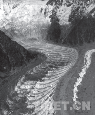 從察隅美麗的阿扎冰川開(kāi)始,李吉均率領(lǐng)冰川組遍訪了群山中的冰川,從古冰川到現(xiàn)代冰川,現(xiàn)代冰川中的大陸性冰川和海洋性冰川,都留下了他們手持冰鎬艱難攀登的身影。在冰川學(xué)家的眼中,多姿多彩的冰川不是冷冰冰的無(wú)情之物,它有生命,也有性格。感覺(jué)親切的是海洋性冰川,大都分布在藏東南和滇、川、藏結(jié)合地帶。依次考察過(guò)阿扎冰川、若果冰川、恰青冰川和古鄉(xiāng)冰川。其中恰青冰川為中國(guó)海洋型冰川之最:長(zhǎng)達(dá)35公里。這種冰面在攝氏零度上下的“暖”性冰川,是溫潤(rùn)的,總是從雪山之巔出發(fā),穿越林地,到達(dá)人類生活的村莊田園。冰川上微小生命麇集,冰蚯蚓,雪蚤,苔蘚類的“冰老鼠”;恰青冰川的冰面上,居然可以生長(zhǎng)草本、木本植物呢!多年生的小柳樹(shù)把根部伸進(jìn)冰層,看上一眼直叫人驚嘆感動(dòng)。阿扎冰川索性陪伴著鄉(xiāng)村日子,村民們說(shuō)它,就像說(shuō)起村中家院一棵樹(shù)那樣,牛羊走失了,就會(huì)說(shuō),到阿扎冰川找找去。相比較而言,大陸型冰川嚴(yán)峻許多,純粹冰世界,仿佛玉石質(zhì)地,當(dāng)然的冷性冰川了。大陸型冰川的樣貌有不同,壯觀的冰塔林是其特色,那是由于缺少了南亞季風(fēng)的照拂,水汽補(bǔ)充不足,而陽(yáng)光又如刻刀般耐心雕琢的結(jié)果。