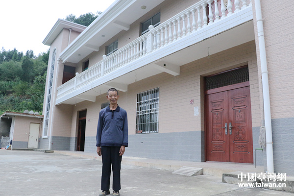 銀廠溝村目前唯一的“貧困戶”李家順,身后是他與侄子共同居住的二層樓房。(中國臺灣網(wǎng) 李寧 攝)