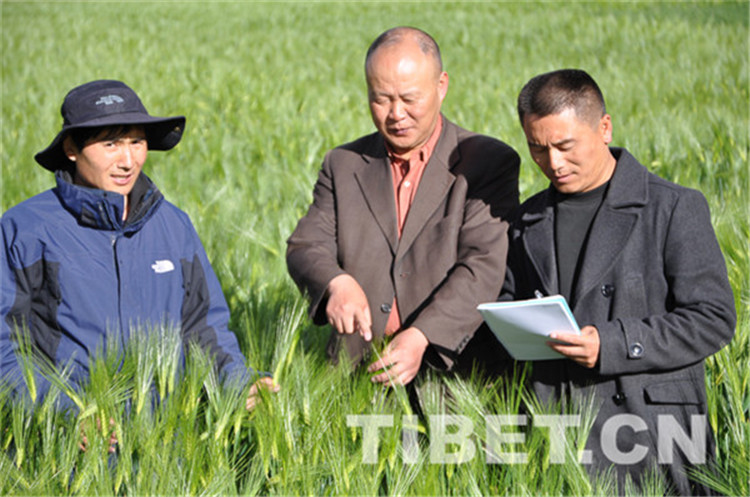 禹代林1964年出生于四川。1985年,他大學(xué)畢業(yè)后來到西藏自治區(qū)農(nóng)牧科學(xué)院農(nóng)業(yè)研究所,致力于青稞新品種的培育和推廣。34年來,他完成了5000份大麥資源特征性的鑒定與繁種入庫,研發(fā)推廣“藏青2000”青稞品種,農(nóng)民種植平均每畝增產(chǎn)50斤以上增收。如今,他已經(jīng)推廣了9個(gè)青稞新品種,栽培技術(shù)示范推廣30余萬畝,累計(jì)培訓(xùn)農(nóng)民達(dá)5.5萬人。圖為2014年禹代林(中)和同事在白朗縣觀察記載藏青2000的主要特征、特性 禹代林供圖。