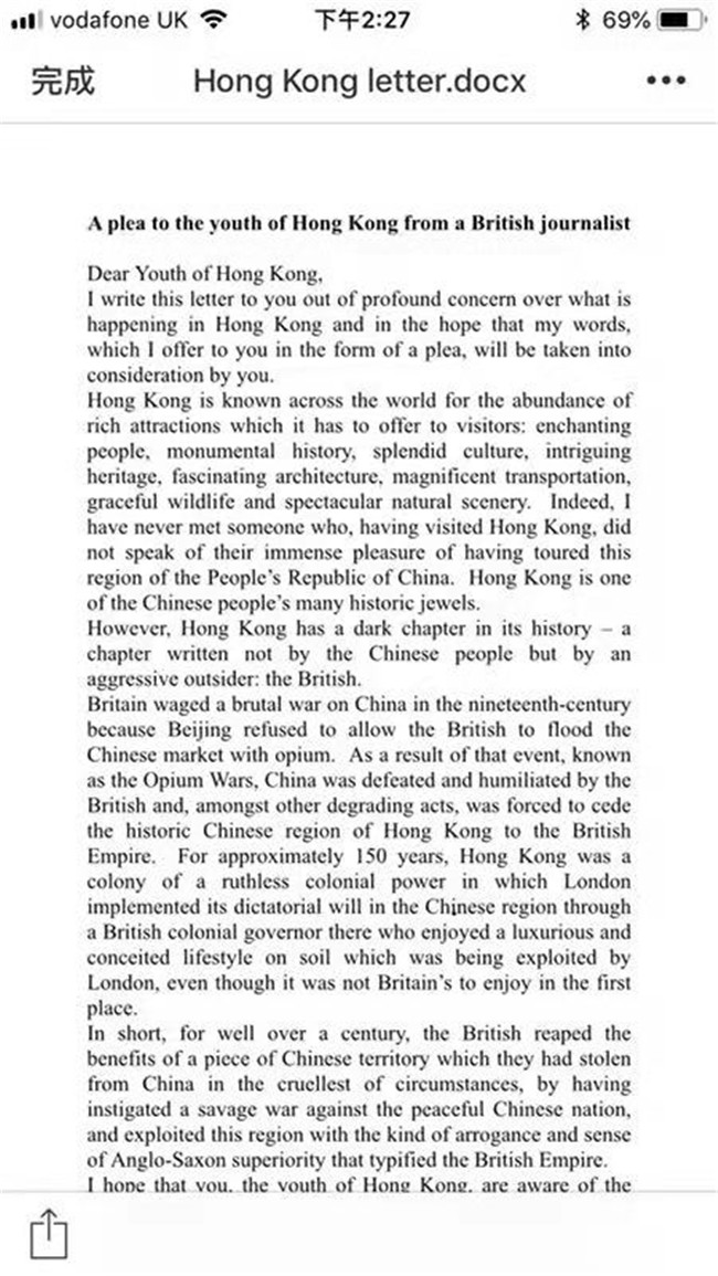 一位英國媒體總編寫給香港青年的信