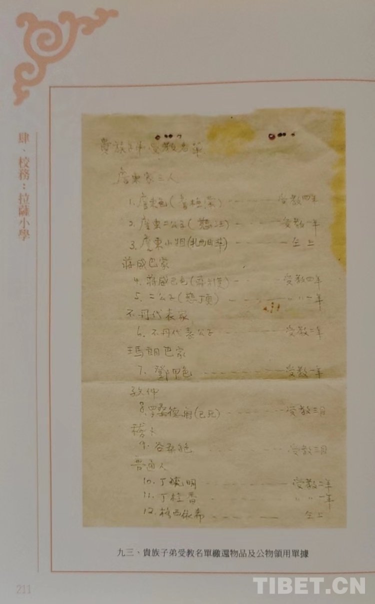 這期間,因為學(xué)校成績斐然,影響大增,不少貴族子弟也慕名前來就讀。拉薩小學(xué)專設(shè)一個特別班,招收貴族、富商的孩子,他們的教學(xué)是漢藏文一起上。在這個班里先后就讀的貴族子弟不少。如詹東家族的三兄妹,即詹東色、詹東·慈汪、詹東·扎西曲準(zhǔn)。詹東色有個漢語名字,叫詹逢春(又稱詹植棠。他是個對中華文化非常喜愛的貴族子弟,會一口流利的四川話,還跟阿旺堪布的一位漢族徒弟學(xué)會了唱京戲。他曾在蒙藏委員會委員長吳忠信進(jìn)藏主持達(dá)賴?yán)镒驳涠Y時,全力給予了幫助。此外,在拉薩小學(xué)上學(xué)的還有瑪朗巴”家族、“稽卜”家族的子弟。十四世達(dá)賴的二哥嘉樂頓珠也曾在這里學(xué)習(xí)過。其他還有邊覺、唐麥、夏扎、雪貴巴等的子女。