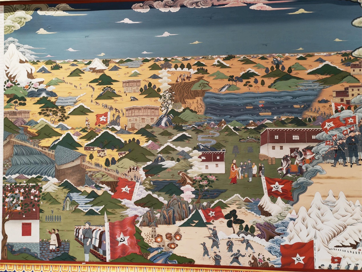 雍仲洛吾等巨幅唐卡《紅星照耀雪域》局部 喜饒尼瑪提供