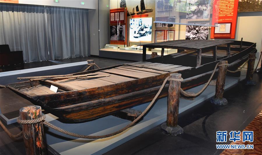 這是香山革命紀念館中,《為新中國奠基——中共中央在香山》主題展覽展出的人民解放軍渡江戰(zhàn)役使用的同型木船(9月7日攝)。新華社發(fā)(任超 攝)