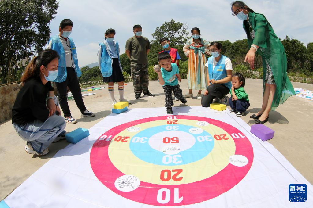 5月28日,在江蘇省連云港市連云區(qū)連島街道,孩子們在體驗(yàn)端午習(xí)俗“射五毒”。新華社發(fā)(朱華南 攝)