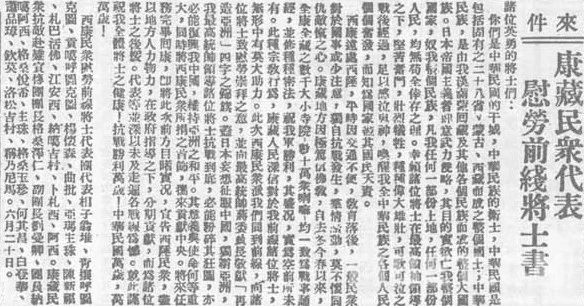 當(dāng)年頗有影響的“西康民眾慰勞前線(xiàn)將士代表團(tuán)”