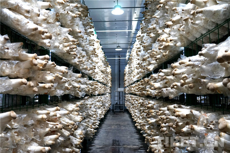 圖為珠峰一見(jiàn)則喜生物科技示范園杏鮑菇出菇室 攝影:張敏