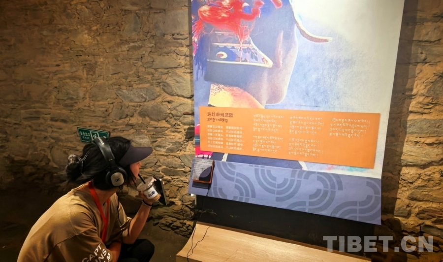 圖為游客參觀強吉莊園公共文化活動中心時通過影音設(shè)備聆聽歌曲《達娃卓瑪悲歌》 攝影:劉莉