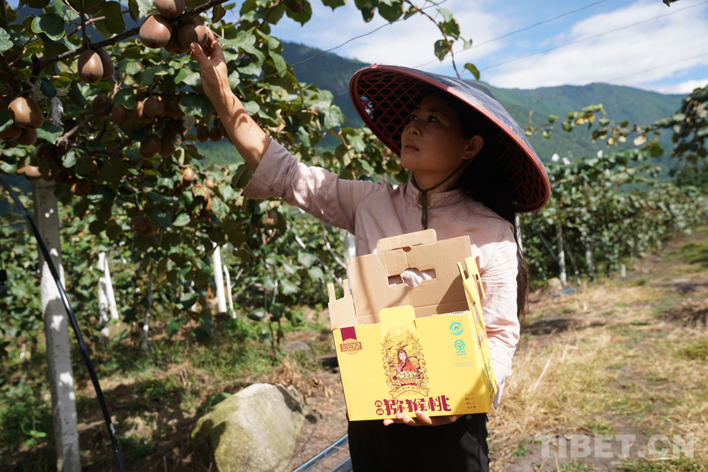 圖為下察隅鎮(zhèn)夏尼村僜人婦女正在采摘獼猴桃(資料圖)圖片由雄偉龍?zhí)峁?/p>