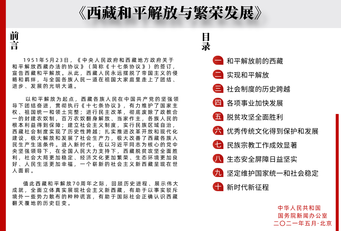 國(guó)務(wù)院新聞辦發(fā)表《西藏和平解放與繁榮發(fā)展》白皮書(shū)