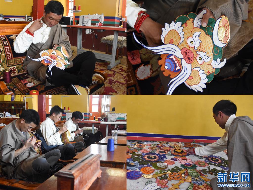 一塊高2米、寬55米的白色底布,近千幅大小各異、各色綢緞手工縫制的吉祥圖案,在索朗羅拉和小伙伴們的飛針走線中“匯聚”成一幅色彩艷麗、立體感很強(qiáng)的唐卡作品。