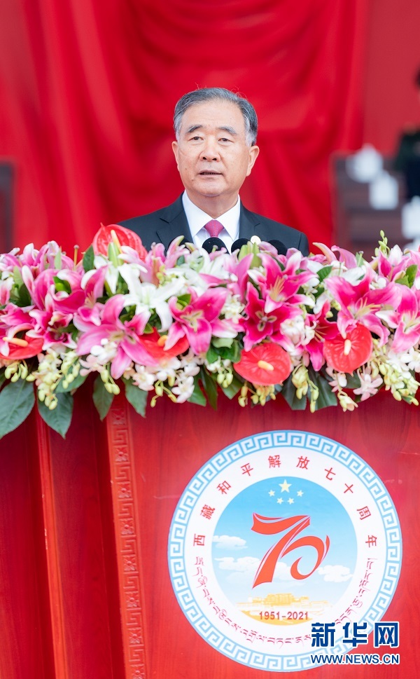 8月19日,慶祝西藏和平解放70周年大會(huì)在拉薩隆重舉行。中共中央政治局常委、全國(guó)政協(xié)主席、中央代表團(tuán)團(tuán)長(zhǎng)汪洋出席慶祝大會(huì)并講話。新華社記者 翟健嵐 攝