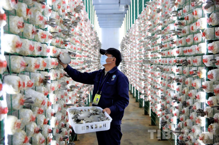 這座位于謝通門縣達(dá)那答鄉(xiāng)的食用菌基地占地345畝,建筑面積46.6畝,設(shè)有實(shí)驗(yàn)室、原料庫、滅菌車間、攪拌車間、打包車間、冷卻車間、液體菌種培養(yǎng)室、接種室、菌包培養(yǎng)室、工廠化出菇棚、冷庫等,是西藏自治區(qū)唯一一家集菌棒制作、生物菌生產(chǎn)培育、生物質(zhì)燃料與有機(jī)肥制作、種植技能培訓(xùn)于一體的規(guī)?;⒓s化、標(biāo)準(zhǔn)化、現(xiàn)代化、循環(huán)綠色生物科技示范園區(qū)。
