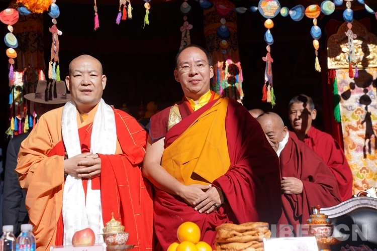 中央統(tǒng)戰(zhàn)部、國家宗教事務(wù)局、中國佛教協(xié)會等致賀信,西藏自治區(qū)黨委常委、統(tǒng)戰(zhàn)部部長旦科代表西藏自治區(qū)黨委、政府講話,西藏自治區(qū)政協(xié)副主席,扎什倫布寺管理委員會第一主任薩龍?平拉代表扎什倫布寺管委會發(fā)言,表達(dá)對班禪獲得嘎欽學(xué)位的祝賀。