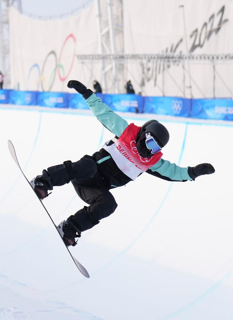 2月9日,中國選手蔡雪桐在北京2022年冬奧會單板滑雪女子U型場地技巧比賽中。新華社記者牟宇攝