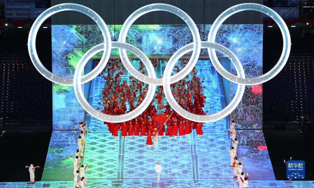 2月4日晚,第二十四屆冬季奧林匹克運動會開幕式在北京國家體育場舉行。這是中國代表團在開幕式上入場。新華社記者 徐子鑒 攝