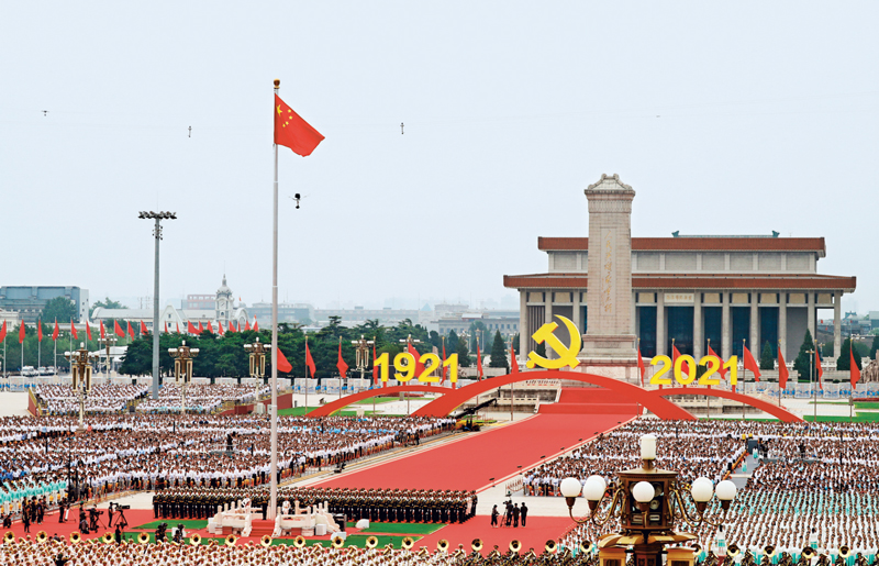 我們黨的百年奮斗史,就是一部為中國人民謀幸福、為中華民族謀復興的歷史,一部踐行初心使命的歷史,一部與人民心連心、同呼吸、共命運的歷史。圖為2021年7月1日上午,慶祝中國共產(chǎn)黨成立100周年大會在北京天安門廣場隆重舉行。 新華社記者 蘭紅光/攝