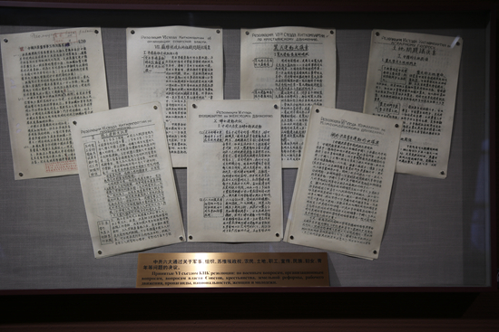展廳第二部分“中共六大的籌備與召開”中展出的大會(huì)會(huì)場(chǎng)規(guī)則文件。中青報(bào)·中青網(wǎng)駐俄羅斯記者 張健/攝