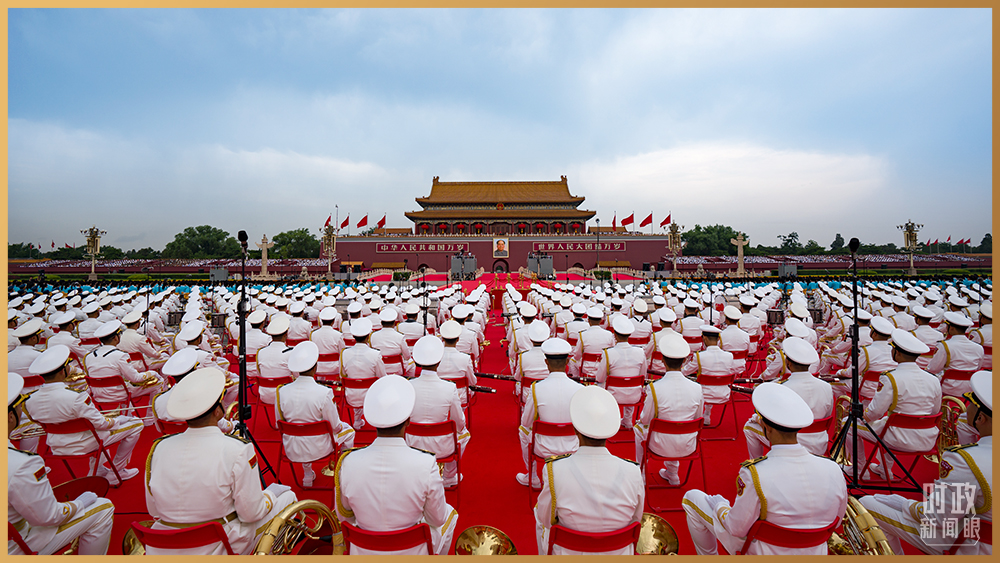 中國人民解放軍聯(lián)合軍樂團靜待演奏開始。(總臺記者廖江衡拍攝)