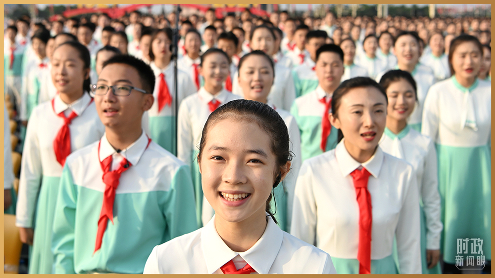 慶祝大會現場的共青團員和少先隊員代表(總臺記者孫楠拍攝)