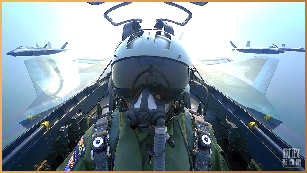 15架殲-20飛機組成3個梯隊,飛過天安門廣場。