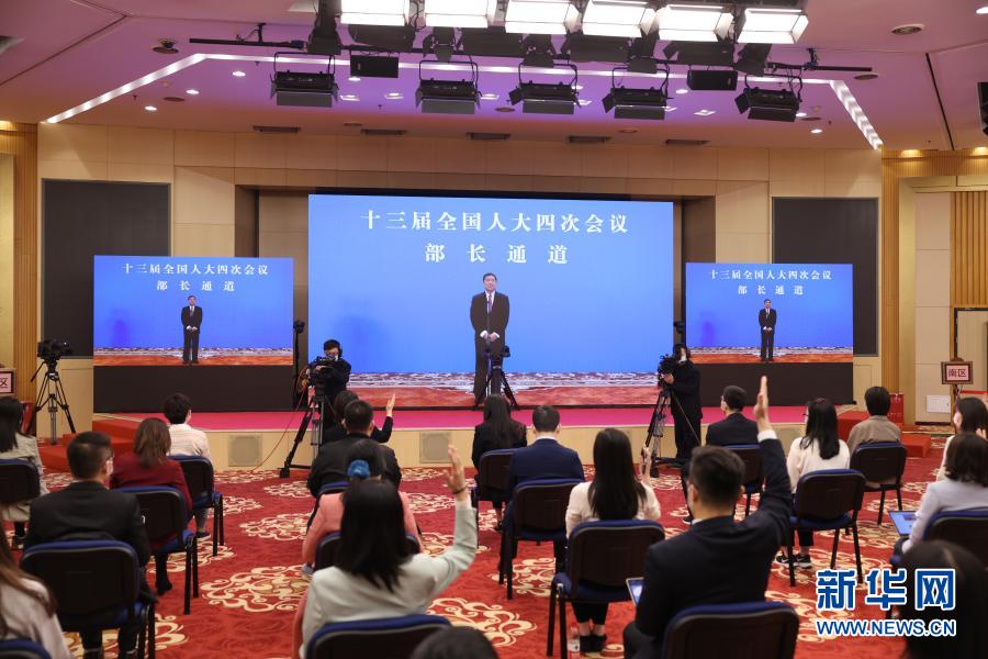 3月5日,第十三屆全國人民代表大會第四次會議舉行首場“部長通道”采訪活動。這是記者在分會場通過網(wǎng)絡(luò)視頻方式提問。新華社記者 曹燦 攝