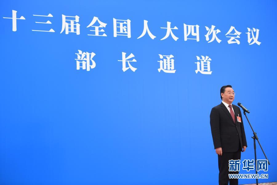 3月5日,第十三屆全國人民代表大會第四次會議舉行首場“部長通道”采訪活動。這是財政部部長劉昆通過網(wǎng)絡(luò)視頻方式接受采訪。新華社記者 陳曄華 攝