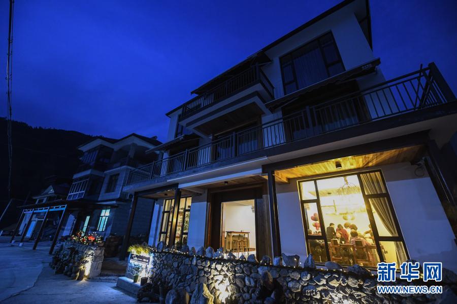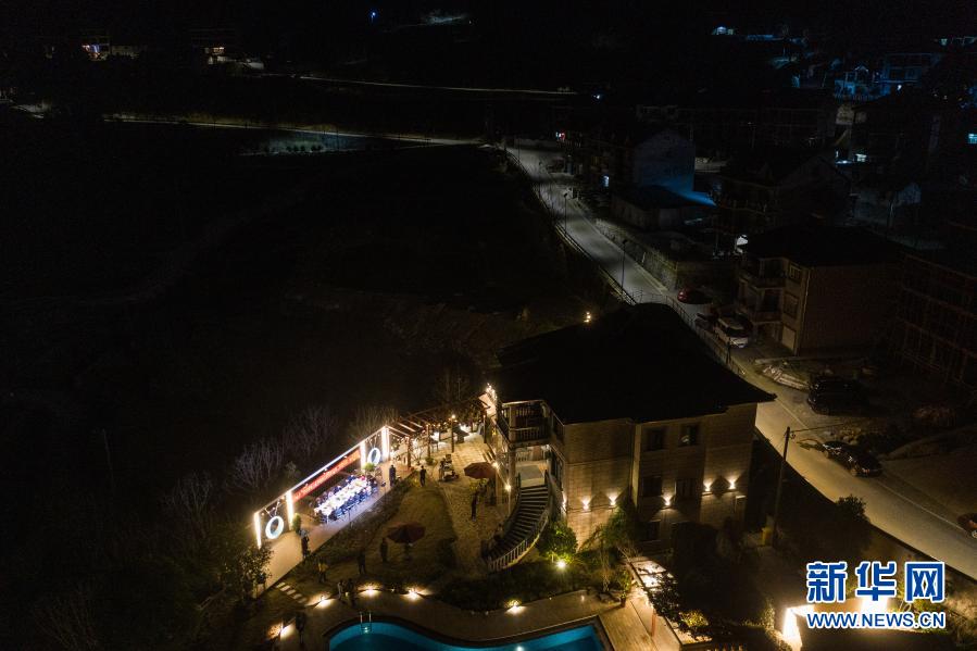 2月22日,桐廬縣鐘山鄉(xiāng)鄉(xiāng)賢代表、民宿業(yè)主代表、桐廬縣鄉(xiāng)兩級(jí)人大代表以及黨員和村民代表在鐘山鄉(xiāng)參加“新村夜話”討論活動(dòng)(無(wú)人機(jī)照片)。新華社記者 徐昱 攝