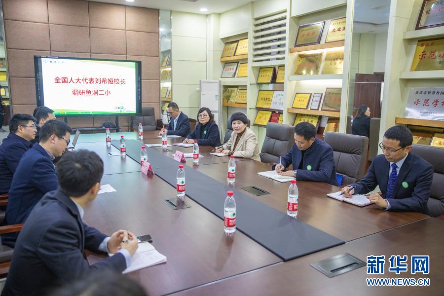 2月21日,在重慶市九龍坡區(qū)謝家灣小學(xué),劉希婭在與家長代表們座談時發(fā)言。新華社記者 黃偉 攝