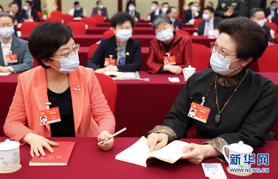 3月6日,三位女代表在駐地交流。新華社記者 溫競?cè)A 攝