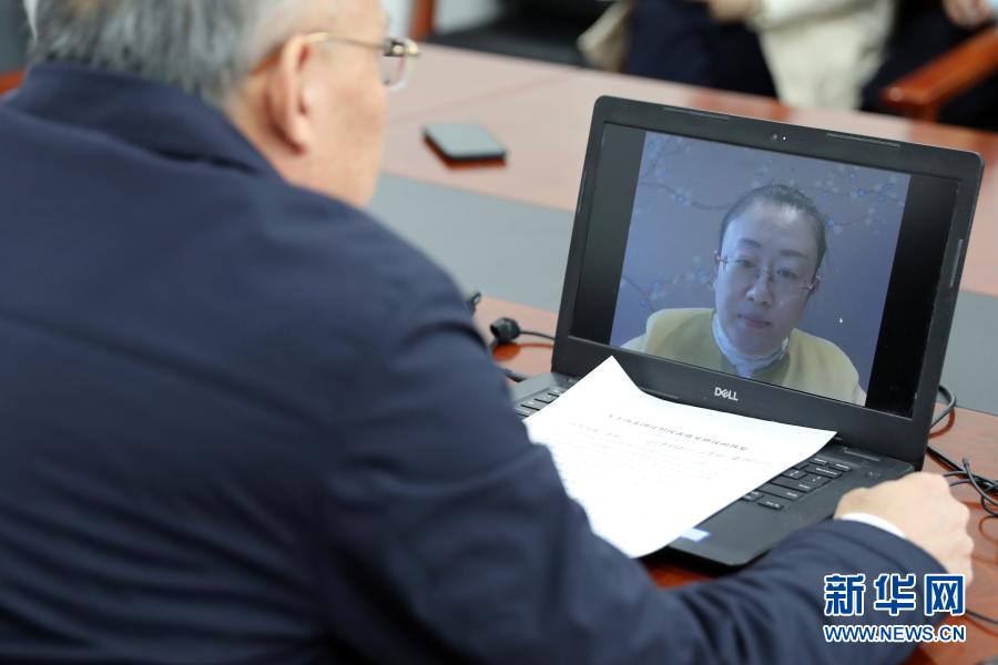 3月7日,全國(guó)人大代表、山東省泰安市農(nóng)科院食用菌研究所所長(zhǎng)孔怡(屏幕畫面中)同農(nóng)業(yè)農(nóng)村部種業(yè)管理司副司長(zhǎng)孫好勤在北京進(jìn)行網(wǎng)絡(luò)視頻連線。這是一次不尋常的兩會(huì)“速遞”:3月5日代表提出建議,3月6日建議經(jīng)國(guó)務(wù)院辦公廳轉(zhuǎn)到農(nóng)業(yè)農(nóng)村部,3月7日中午就實(shí)現(xiàn)了部門與代表的“云對(duì)話”。新華社記者 李木子 攝
