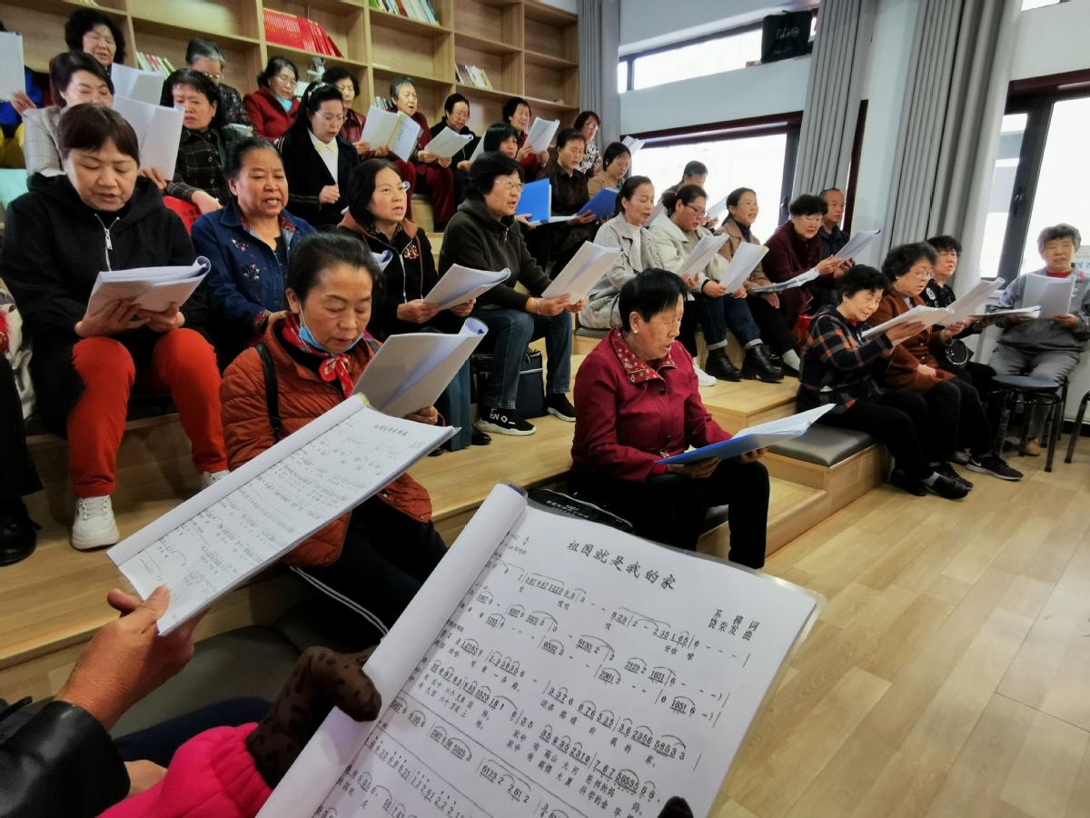 社區(qū)合唱團在排練演唱《祖國就是我的家》。孫若男 攝