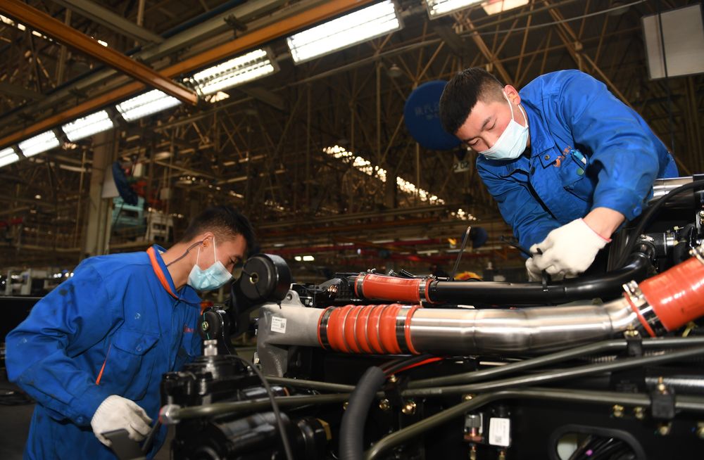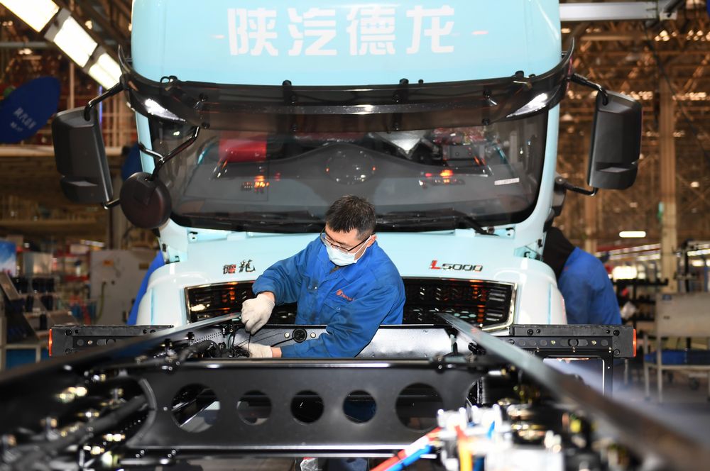 1月20日,工人在陜西汽車控股集團(tuán)有限公司總裝車間進(jìn)行重型卡車裝配。