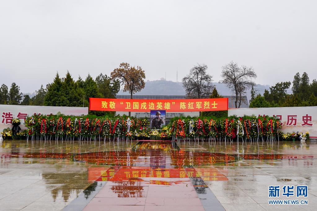 這是在甘肅省蘭州市烈士陵園拍攝的社會各界人士給陳紅軍烈士敬獻(xiàn)的花束、花籃(2月23日攝)。新華社記者 范培珅 攝