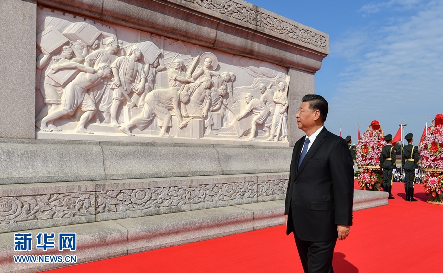 9月30日上午,黨和國家領(lǐng)導(dǎo)人習(xí)近平、李克強、栗戰(zhàn)書、汪洋、王滬寧、趙樂際、韓正、王岐山等來到北京天安門廣場,出席烈士紀(jì)念日向人民英雄敬獻花籃儀式。這是習(xí)近平瞻仰人民英雄紀(jì)念碑。 新華社記者 岳月偉 攝