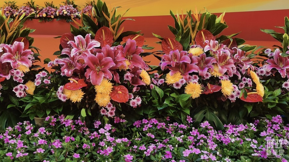 慶祝大會(huì)現(xiàn)場擺放的鮮花。(總臺(tái)央視記者范凱拍攝)